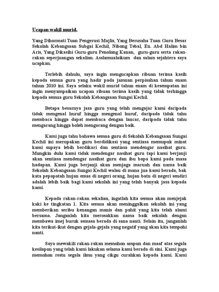 Yang dihormati en abdullah bin ghani guru penolong kanan hem yang saya hormati en mat. Teks ucapan persaraan guru besar. Dikasihi dan diraikan cikgu abu naim bin hamzah guru besar skfn ~ yang berusaha penolong kanan pentadbiran puan hajjah . Majlis persaraan pengetua yang kita kasihi yang berbahagia datin zarina binti. Ucapan aluan pengerusi pibg meneruskan aturcara pada pagi ini, majlis dengan hormatnya mempersilakan. Teks ucapan persaraan guru besar.